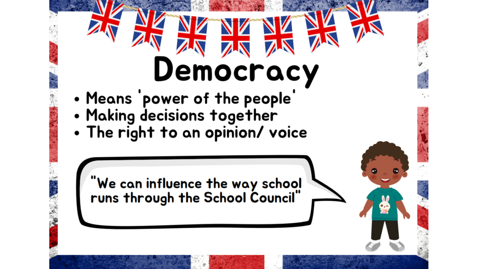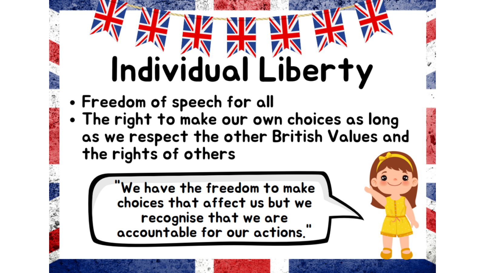 Our school council wanted to hold an assembly about the British Values to ensure everyone is happy, healthy and safe in school. The children chose to play the National Anthem whilst classes entered the hall and then they spoke about how each value has a positive effect on our community and went into detail about how we already show the British Values in school. Our school councillors finished the assembly by asking everyone to make choices that reflect our British Values and then held a quick quiz to understand how much their audience had learnt.