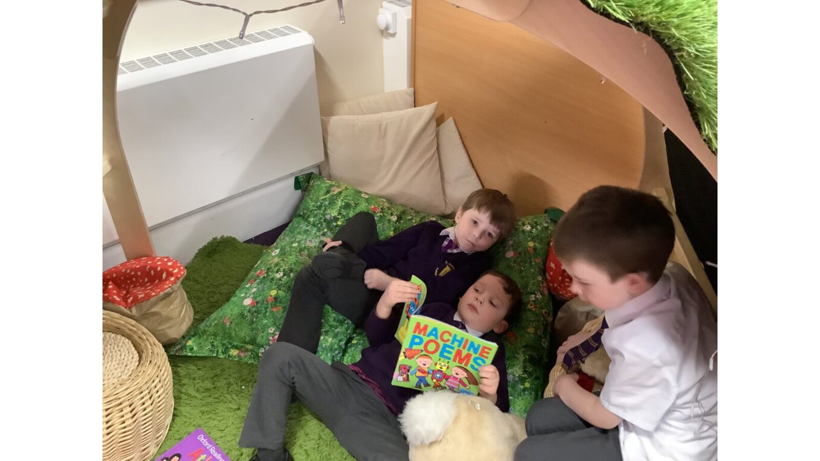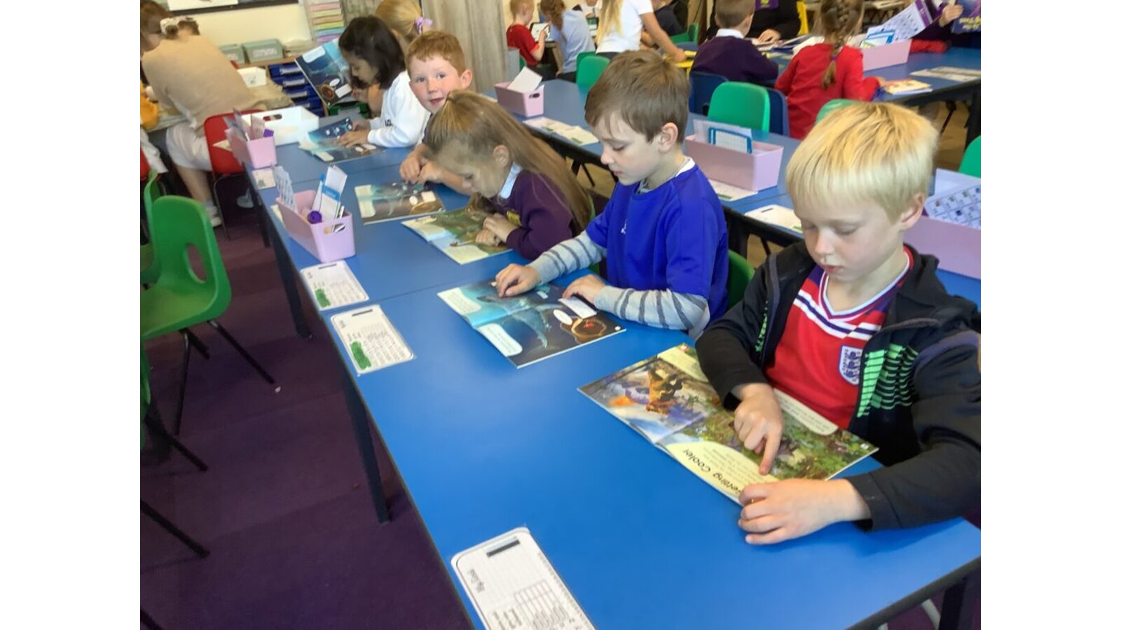 Whole-school reading events such as World Book Day are celebrated every year, to further raise the profile of reading in our school. We also have access to a well-resourced central library as well as class libraries, library loan boxes and visits from the Library Service and local authors, all of which enthuse the children and develop their love of reading.