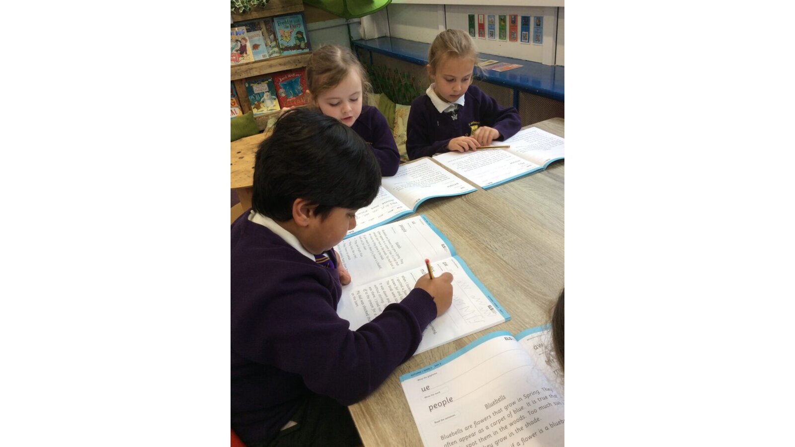 Children take books home daily to support and embed skill development outside of school. In Key Stage 1, ELS Phonics assessments determine the books the children take home. In Key Stage 2, children progress through the book bands in line with teacher assessments. Our school-book banding system offers our children a broad range of texts once they have mastered the early reading skills. All children have access to assigned books on Oxford Owl and Oxford Ready Buddy. Staff provide the children with regular opportunities to read in school on a one-to-one basis and in Guided Reading lessons.