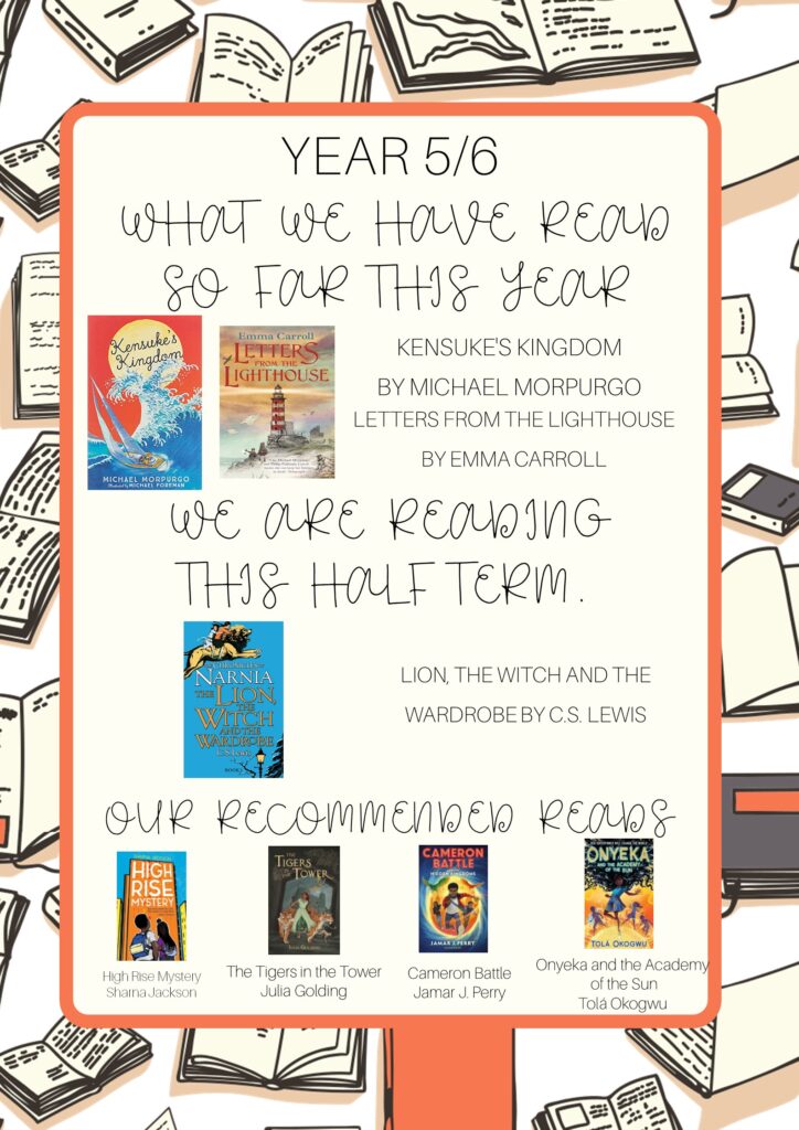 Our aim is to provide the children with opportunities to read and hear carefully selected texts in a range of genres, from different authors, which address themes and issues and that represent the diverse society in which we live. By exploring and experiencing a range of vocabulary through high-quality fiction and non-fiction texts, their language repertoire will increase and enable the children to use their imagination and become more competent, creative writers.