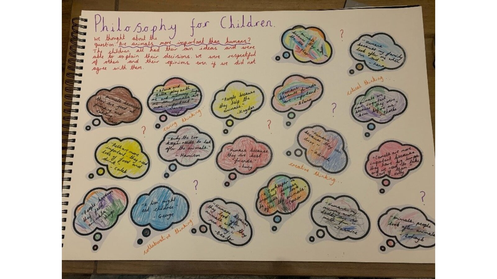 At St. Anthony’s our intent for our Philosophy For Children (P4C) education is to ensure that a philosophical ethos is incorporated across the wider curriculum. That P4C isn’t taught as a stand-alone subject but is weaved throughout and taught to support the depth of learning and understanding in other curriculum subjects. We wish to support each child in developing their own voice and allowing them to use their voices to respectfully share and discuss topics with others. Our aim is to aid children in becoming independent and thoughtful young people, who are ready to meet the demands of the future. Ensuring they develop their communication, collaboration, critical thinking and creativity skills, through a range of philosophical activities, will allow for this to happen.