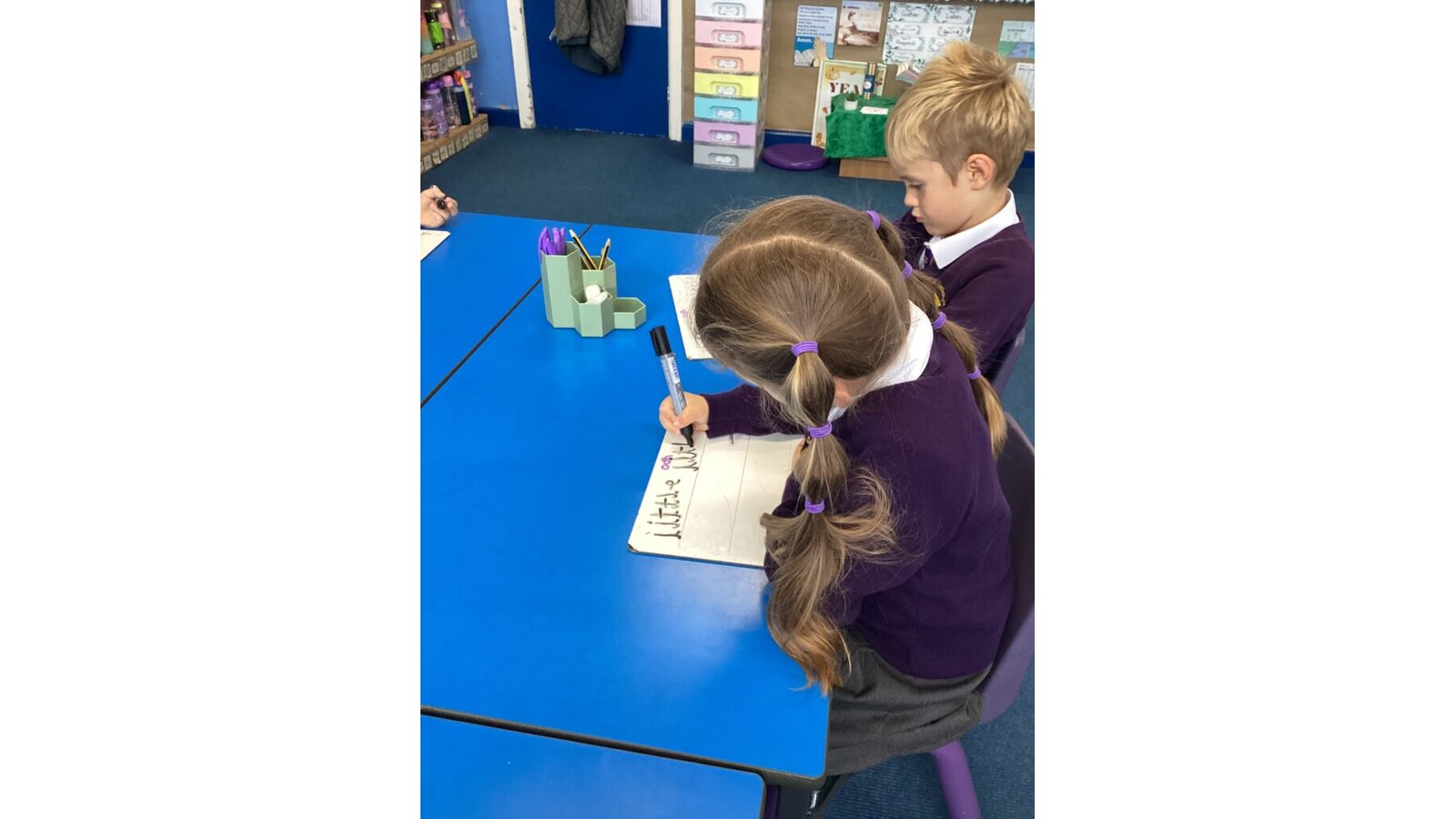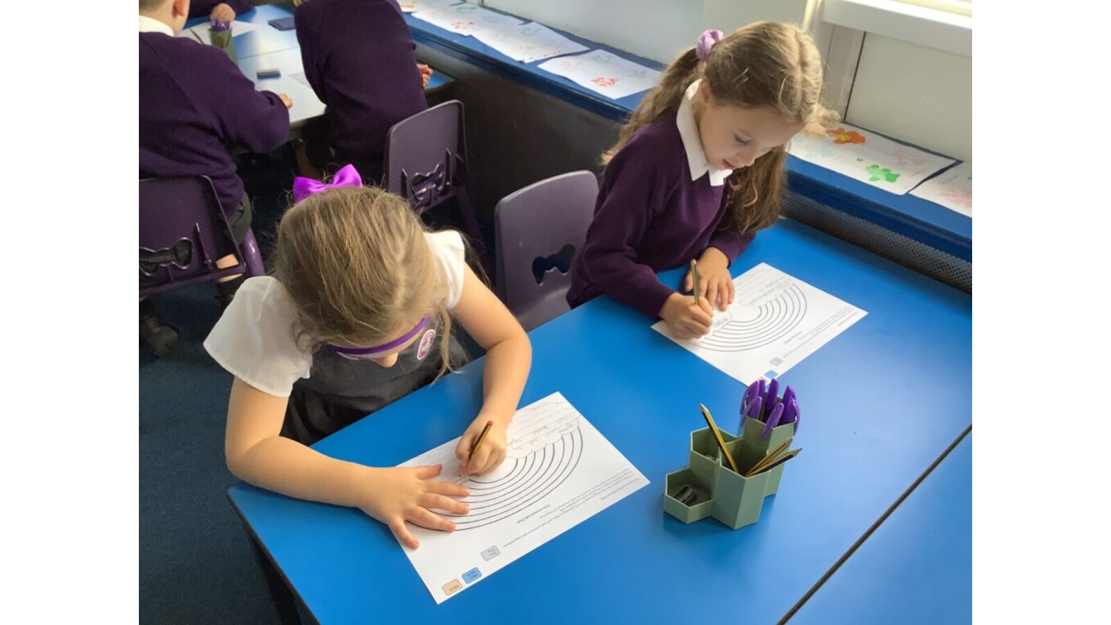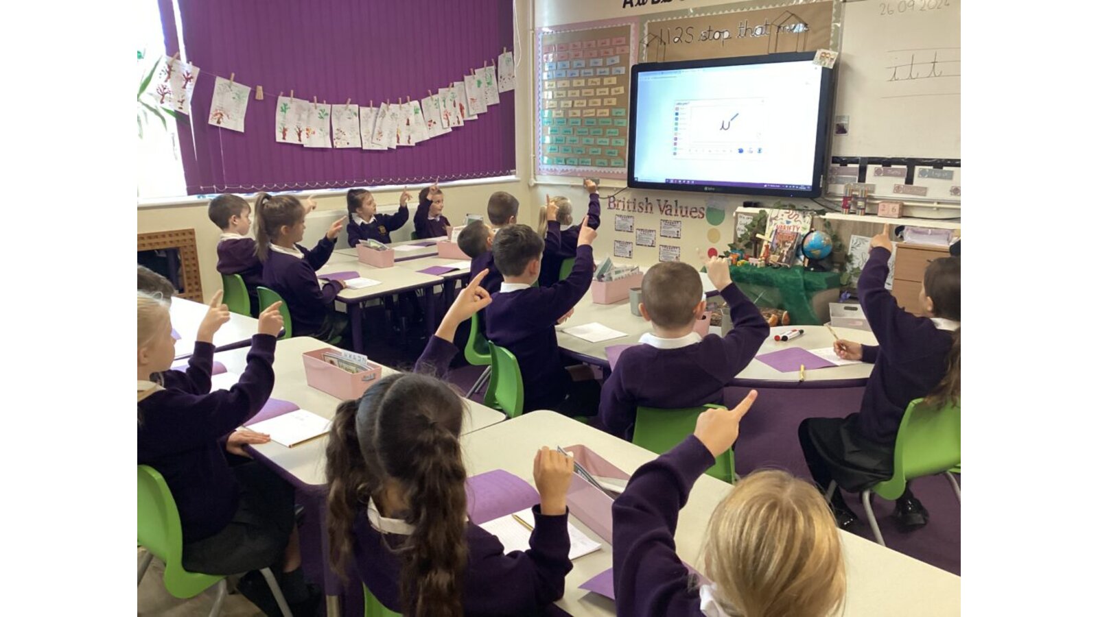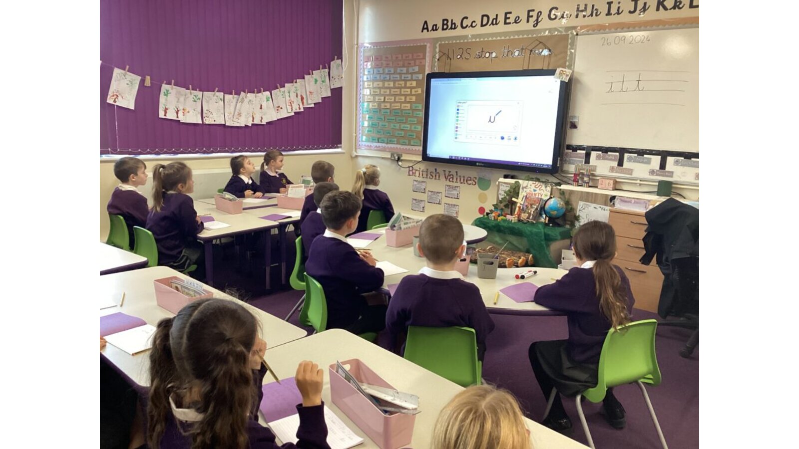 In Key Stage One (Years 1 and 2), children are taught how to form both lower and upper case letters and how to join them, whilst continuing to develop fine and gross motor skills using a range of multi-sensory activities. Handwriting is taught daily and is linked to the daily phonics sessions. The children continue to use large ‘chunky’ pencils for writing until the teacher feels that the child is ready to use smaller equipment.