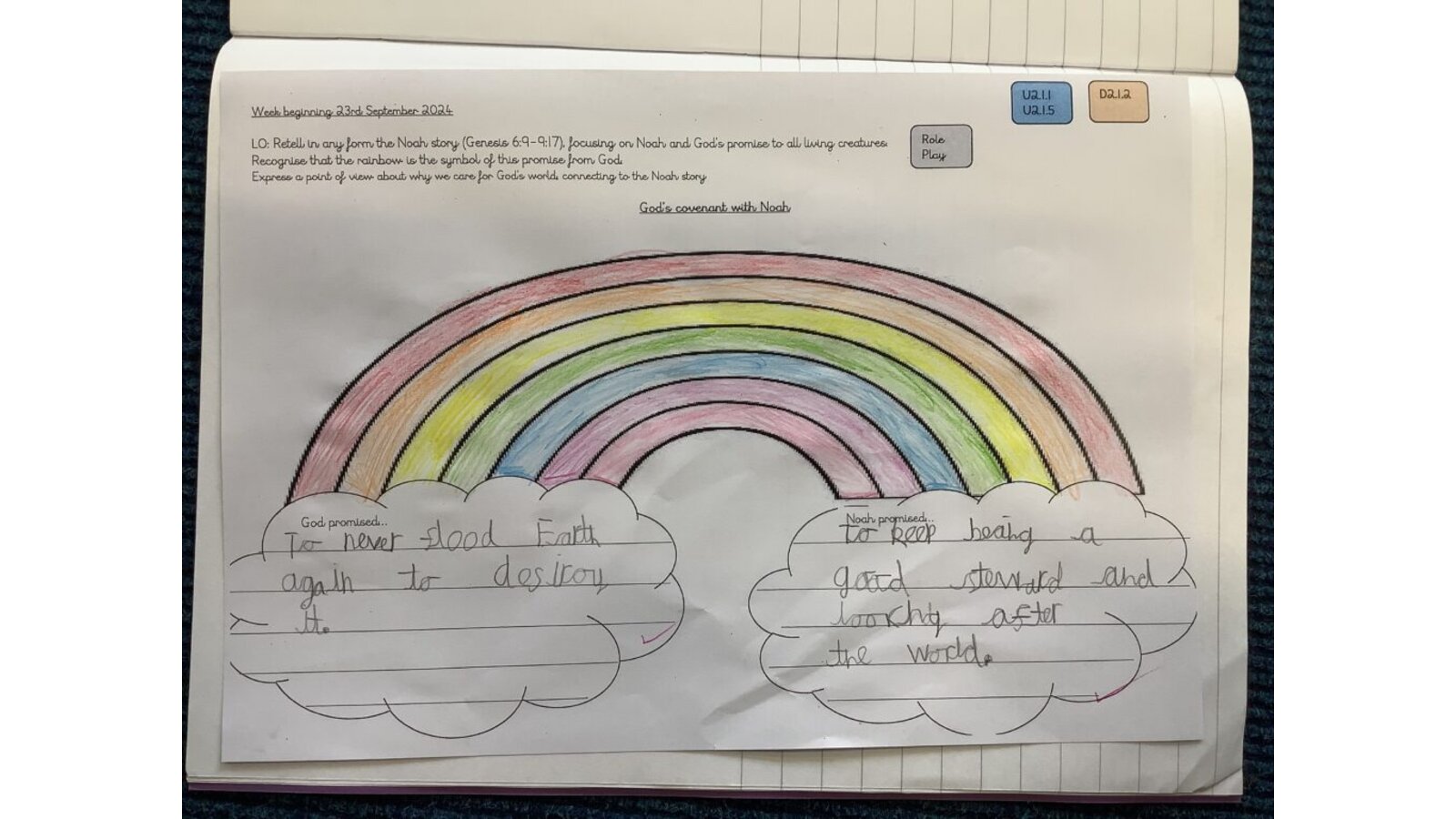 In this branch, pupils will learn about the story of Noah, mainly focusing on God’s promise, or covenant, with Noah and with all creatures that ‘nothing of flesh shall be swept away again by the waters of the flood’ (Gen 9:15). It speaks to humanity’s relationship with God and the hope that flows from God. As Pope Francis writes in Laudato Si’, he gave humanity the chance of a new beginning. The story of Noah shows that though the people turned away from living good lives (sin), a path back to God was restored through the small hope of Noah and his family. God’s promise to Noah is not one way; it depends on Noah (and his family) turning back to God and taking responsibility for the gift of Creation they have received. Noah must be a good keeper, or steward, of the Earth and all living things.
