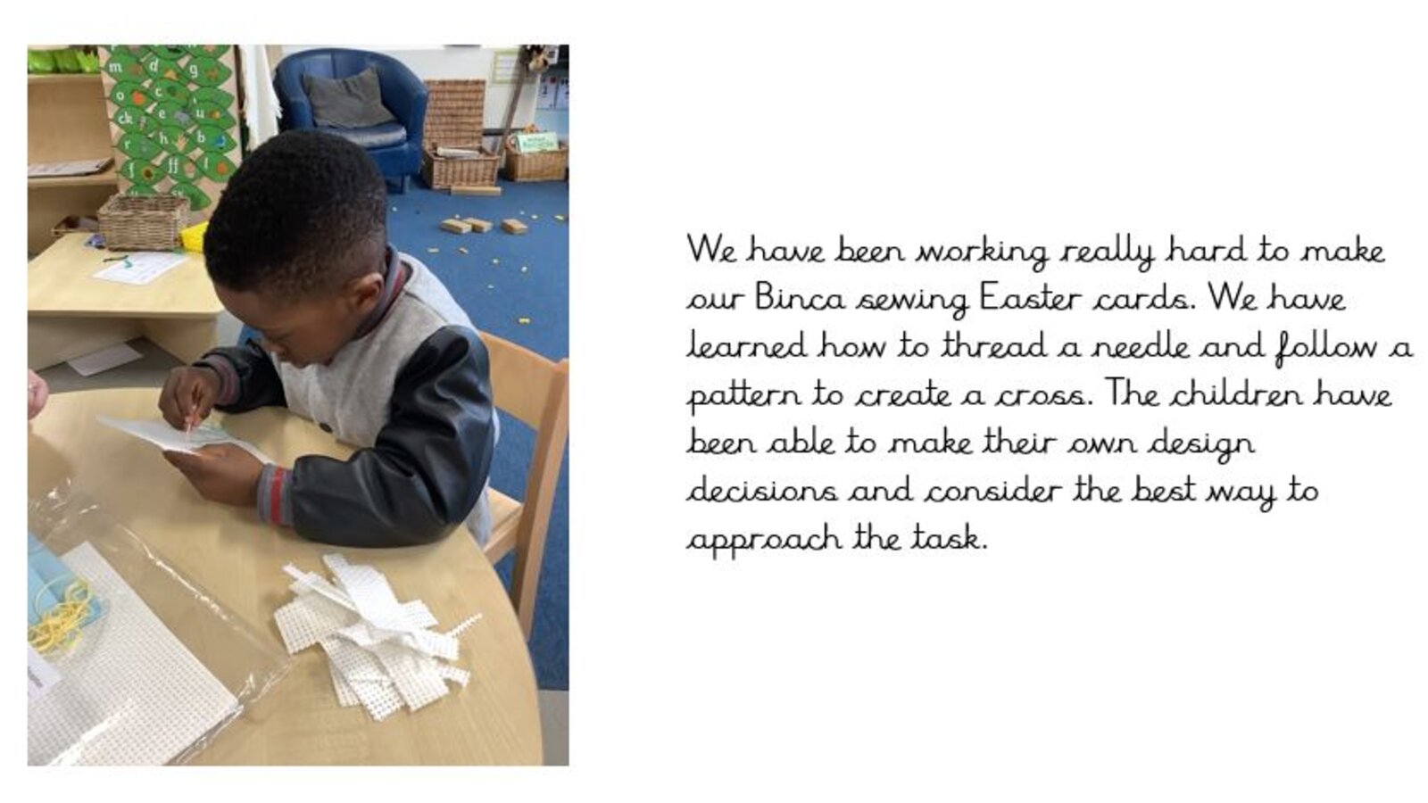 - whilst making, children will be given choice and a range of tools to choose freely from.