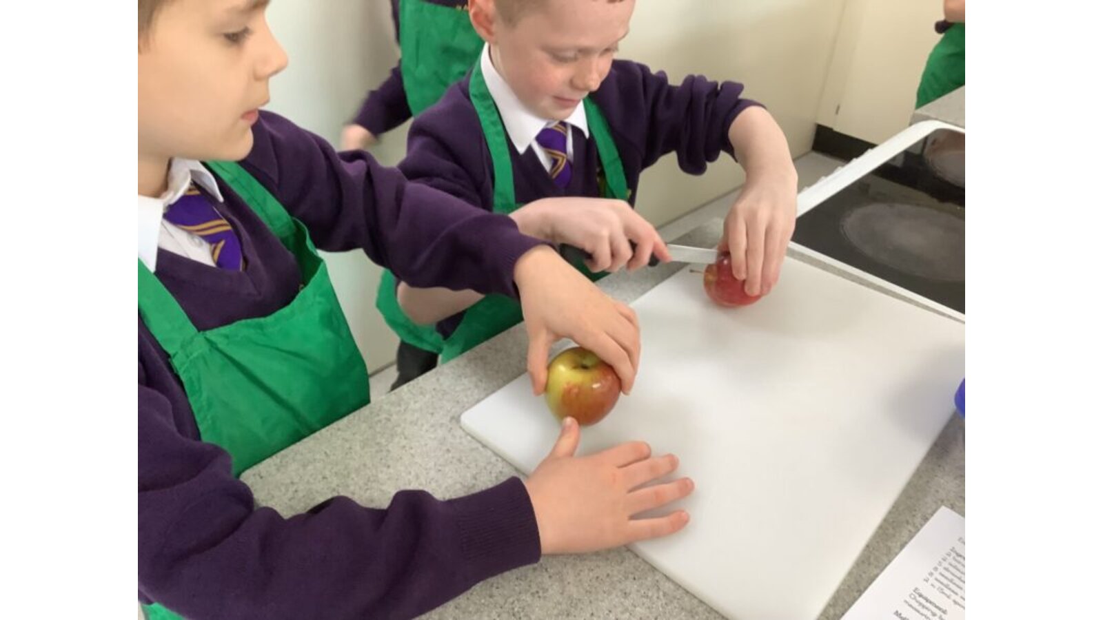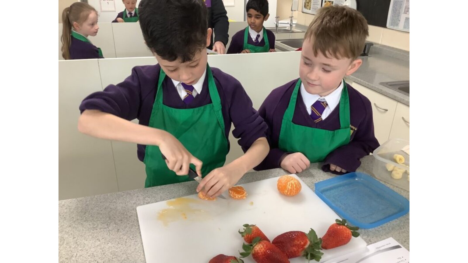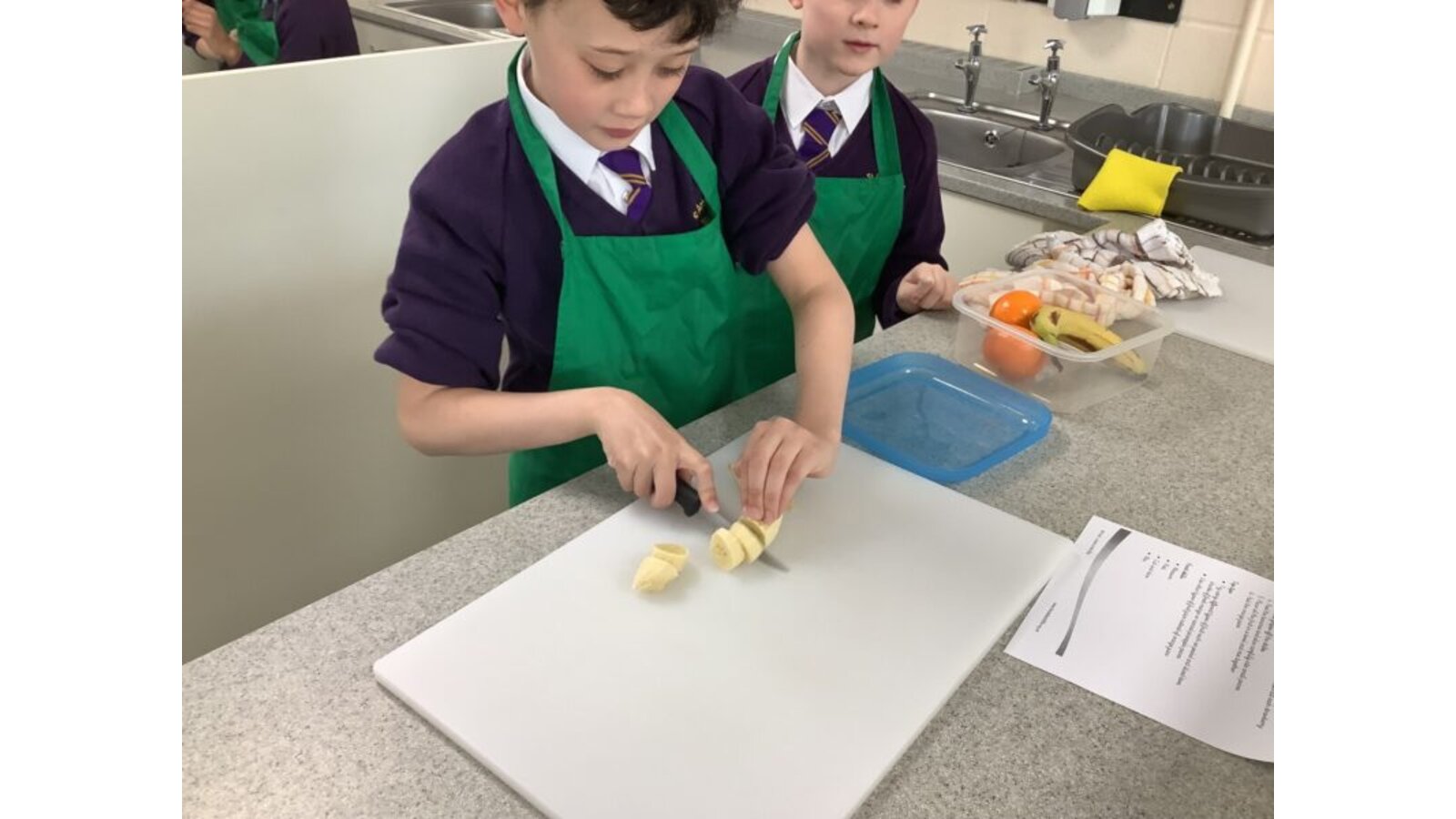 Year 3/4 linked up with Our Lady’s High School for our food technology unit to make their fruit salads. The children planned their recipe in school and used the amazing facilities at the high school for their end product. The children were very excited to work in the food department at Our Lady’s and we were fortunate to have a visit from the head teacher, Mr. Ranson, who discussed the project with the children and he was very impressed!